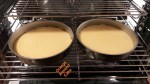 5. Invert cakes to remove from pan and remove parchment paper; reinvert cakes. Using a serrated knife, trim tops of cakes to make level. Place four strips of parchment paper around perimeter of a serving plate or lazy Susan. Place the first layer on the cake plate. Spread frosting over the first layer with a small offset spatula so it extends just beyond edges.