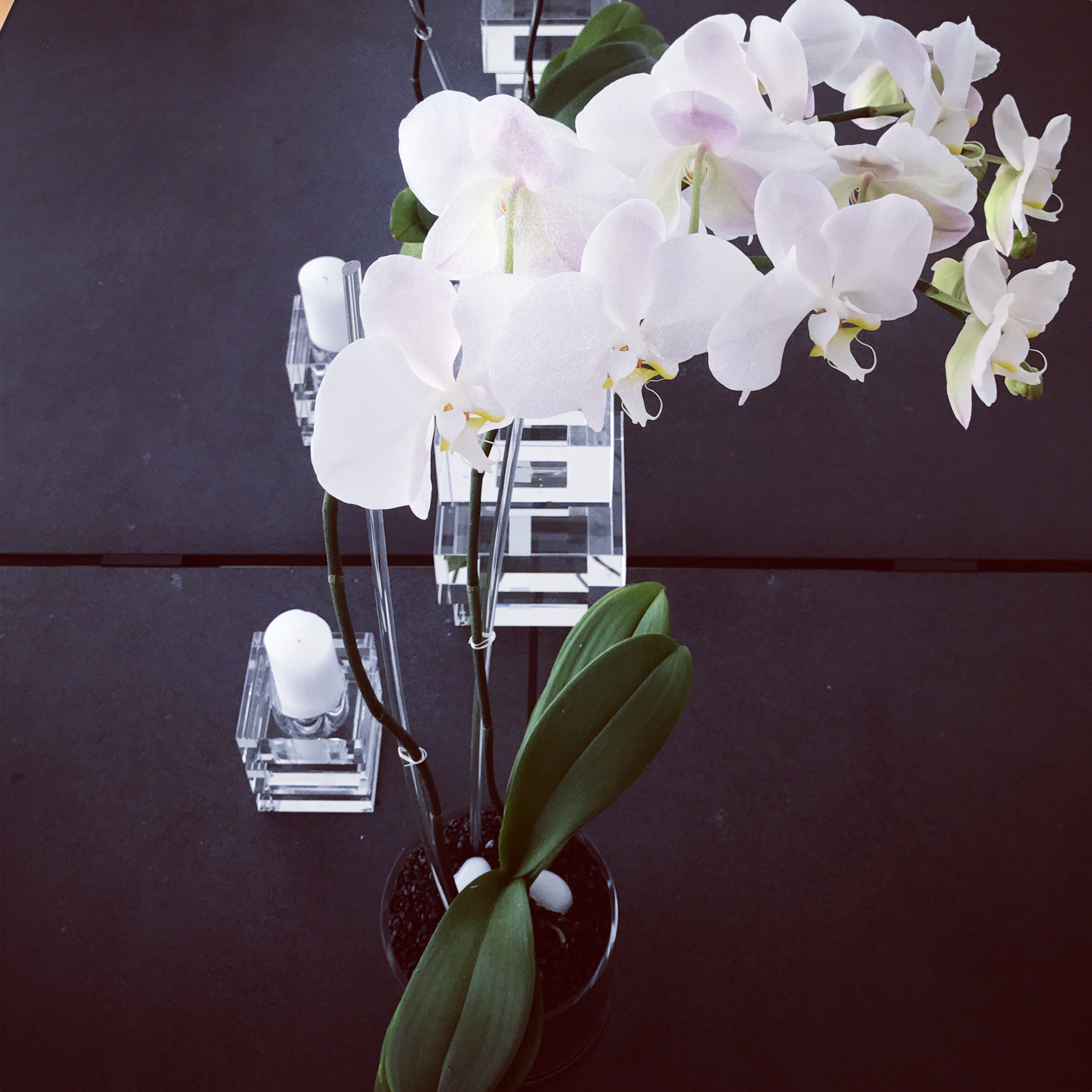 Placing ice cubes on top of the soil once a week will keep the orchids appropriately hydrated. This is a nice trick to remember if you are busy with summer travels because it is so easy to do and low maintenance. However, it is not the best long term strategy for keeping orchids as the flowers need to eventually be re-potted in a proper orchid mix in a pot that can drain water. But as a short-term strategy, using ice cubes is a practical way to remember to water them ( and not over water) your orchids.
